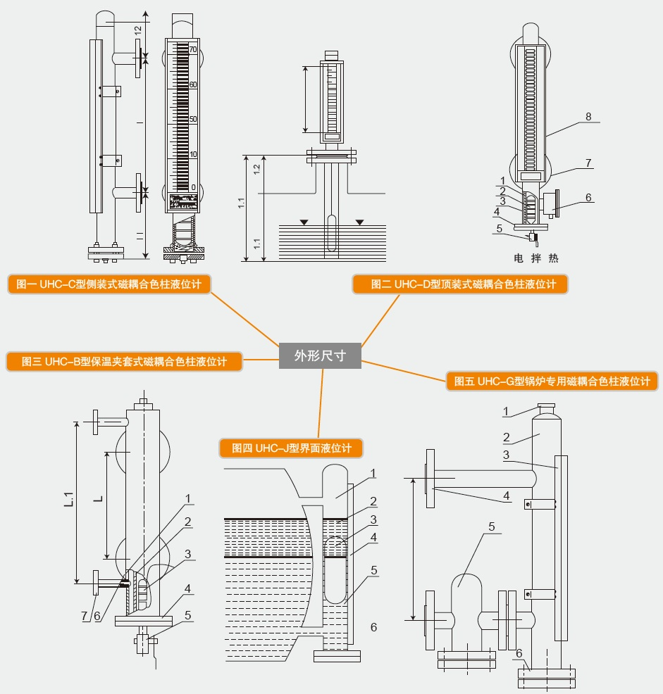 ? ? ? UHC型磁耦合色柱液位計是按HG/T274-1995制造由基本型、液位控制報警開關(guān)、液位遠傳裝置三部分組成,它是以磁性浮子為感測元件,并通過磁性浮子與顯示色柱中的磁性體的磁耦合作用,反映被測液位或界面的測量儀表。