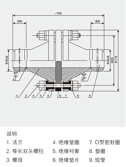 ? ? ? JF系列絕緣法蘭是由法蘭、絕緣襯套、O型密封封圈和短管等部分組成。
